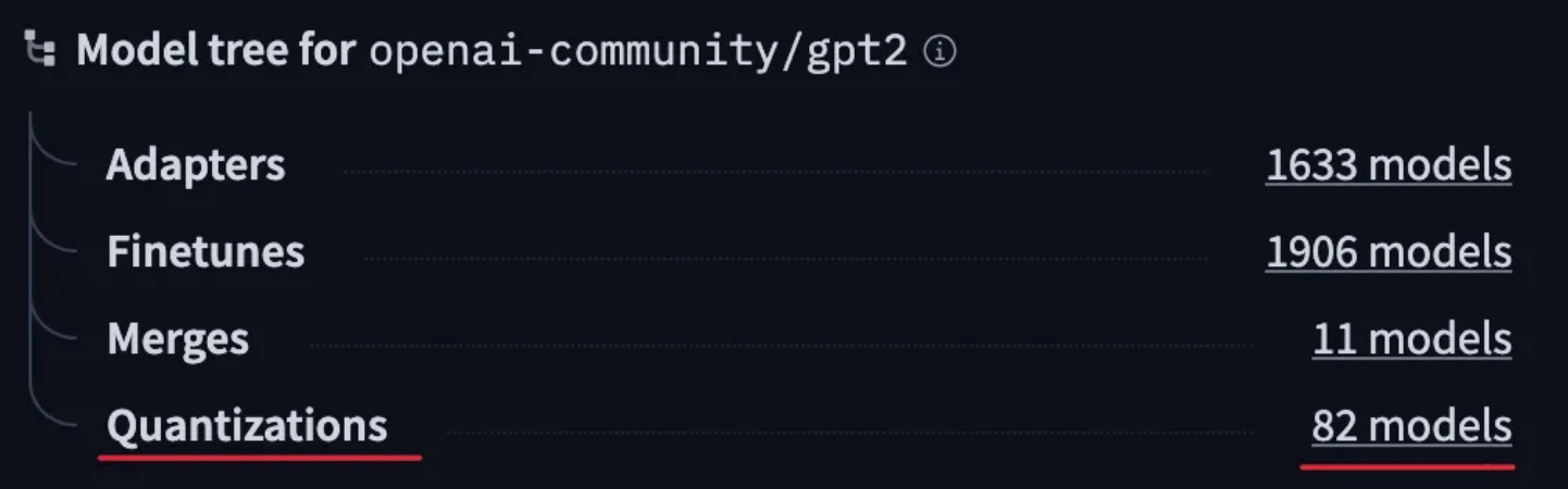 Option 1 is using pre-quantized models on Hugging Face. Most popular models already have pre-quantized versions available. You can search for the model name plus “GPTQ” if you need GPU inference, or the model name plus “GGUF” if you need CPU or Mac inference. For example, instead of searching for “meta-llama/Llama-2-7b-hf”, you would search for “TheBloke/Llama-2-7B-GPTQ”.